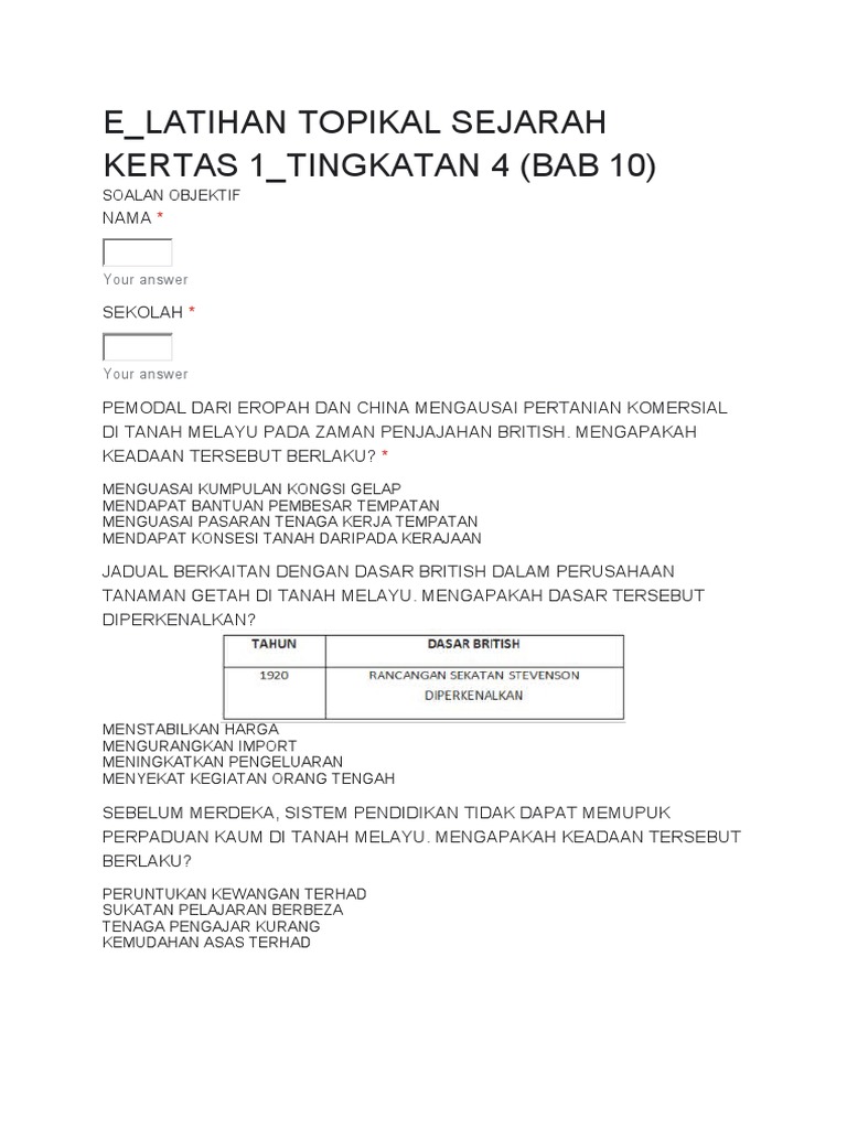 Tajuk Umum Sejarah Kertas 3 Tingkatan 4 Peperiksaan Akhir Tahun-1