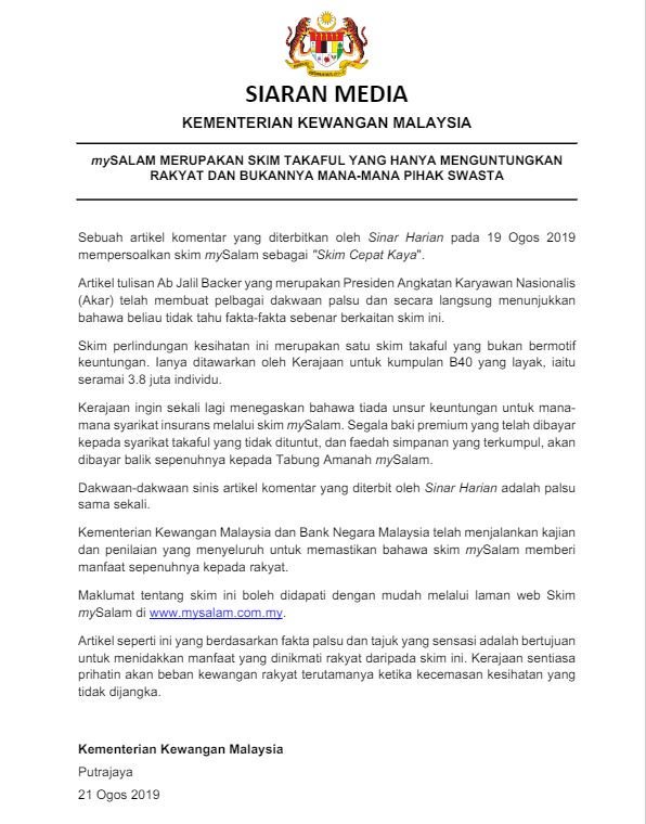 Siaran Media Berkenaan - Kementerian Kewangan Malaysia Facebook