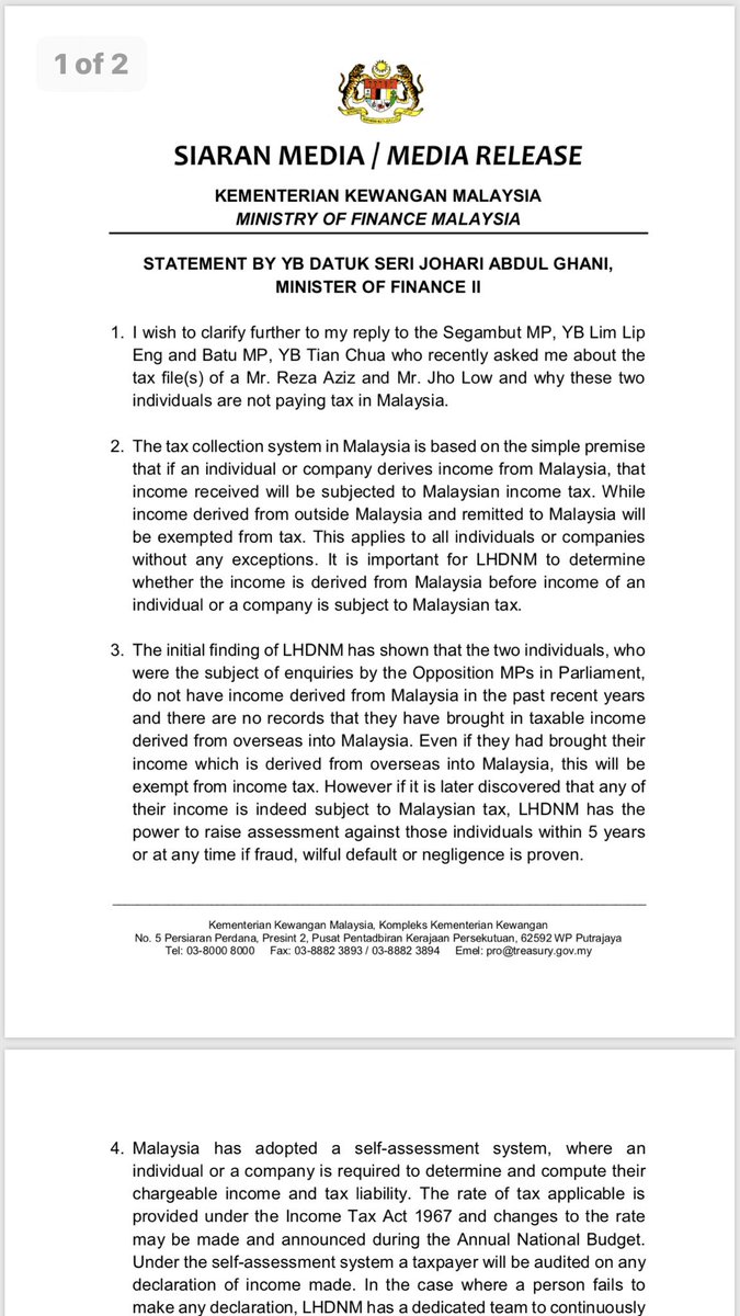 Ministry of Finance๐ฒ๐พ on Twitter: "Siaran media YB Menteri